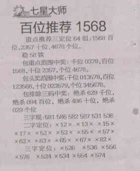 【七星大师】第1526期预测信息<特区报>