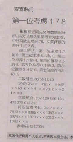 【双喜临门】第1527期预测信息<特区报>