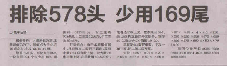 【概率玩彩】第1527期预测信息<特区报>