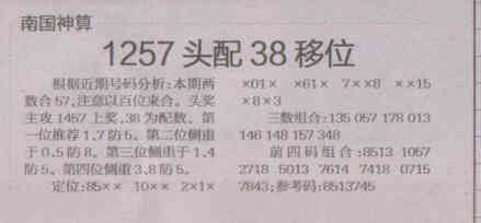 【南国神算】第1527期预测信息<特区报>