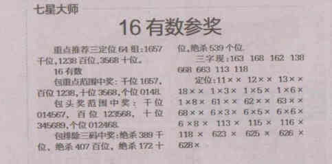 【七星大师】第1527期预测信息<特区报>