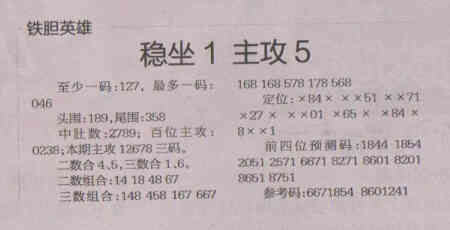 【铁胆英雄】第1527期预测信息<特区报>