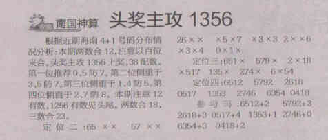 【南国神算】第1529期预测信息<特区报>