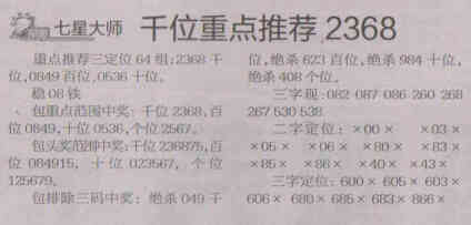 【七星大师】第1529期预测信息<特区报>