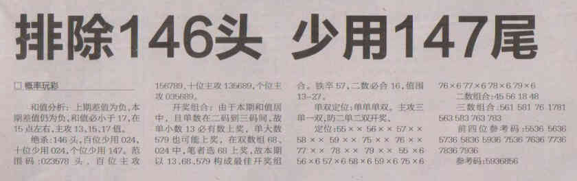 【概率玩彩】第1530期预测信息<特区报>