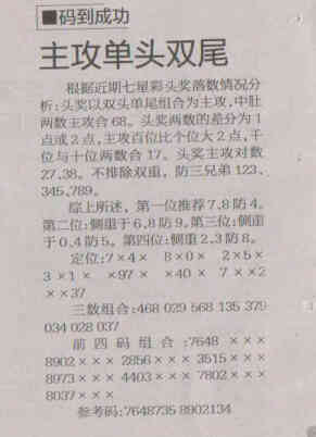 【码到成功】第1531期预测信息<特区报>