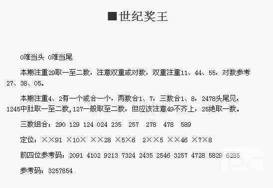 【世纪奖王】第1532期预测信息<特区报>
