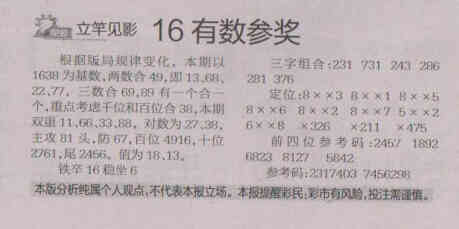【立竿见影】第1532期预测信息<特区报>