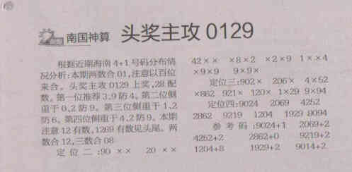 【南国神算】第1532期预测信息<特区报>