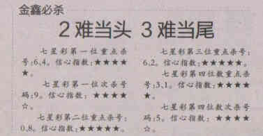【金鑫必杀】第1533期预测信息<特区报>