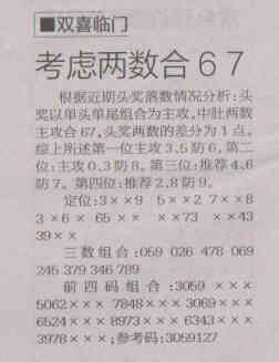 【双喜临门】第1534期预测信息<特区报>