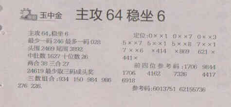 【玉中金】第1535期预测信息<特区报>