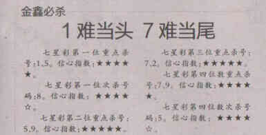 【金鑫必杀】第1536期预测信息<特区报>