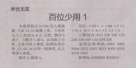 【举世无双】第1536期预测信息<特区报>