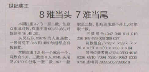 【世纪奖王】第1536期预测信息<特区报>