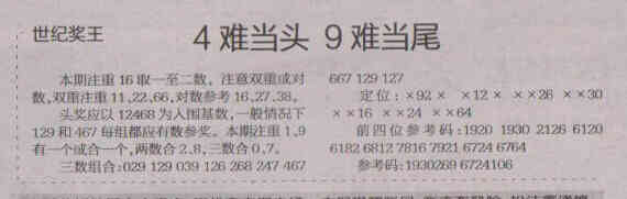 【世纪奖王】第1537期预测信息<特区报>