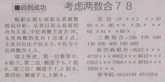 【码到成功】第1538期预测信息<特区报>
