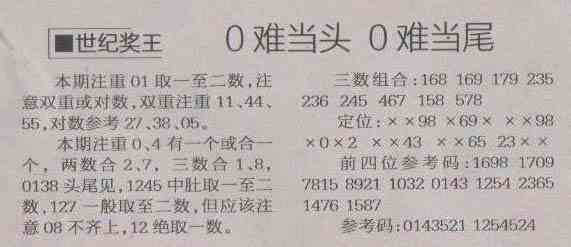 【世纪奖王】第1538期预测信息<特区报>