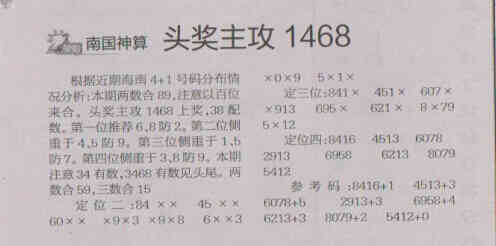 【南国神算】第1538期预测信息<特区报