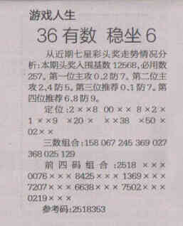 【游戏人生】第1539期预测信息<特区报