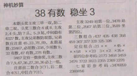 【神机妙算】第1540期预测信息<特区报