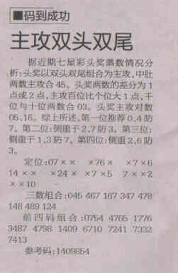 【码到成功】第1543期预测信息<特区报