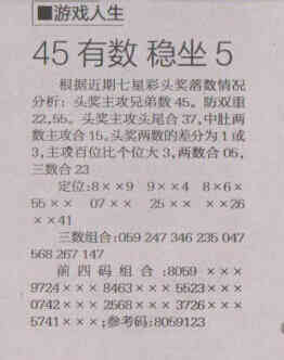【游戏人生】第1543期预测信息<特区报