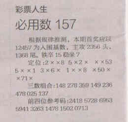 【彩票人生】第1543期预测信息<特区报