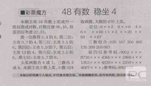 【彩票魔方】第1544期预测信息<特区报