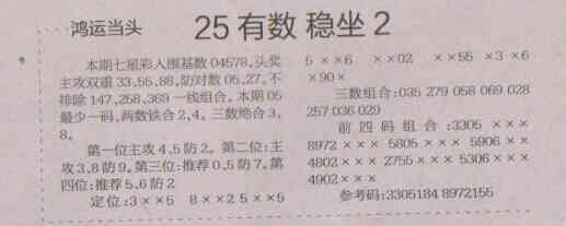 【鸿运当头】第1546期预测信息<特区报