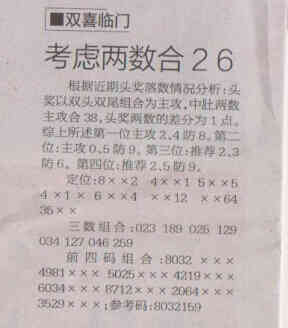 【双喜临门】第1546期预测信息<特区报