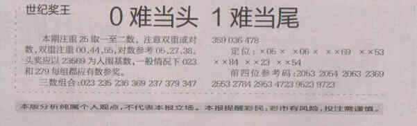 【世纪奖王】第1549期预测信息<特区报