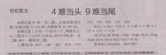 【世纪奖王】第1552期预测信息<特区报