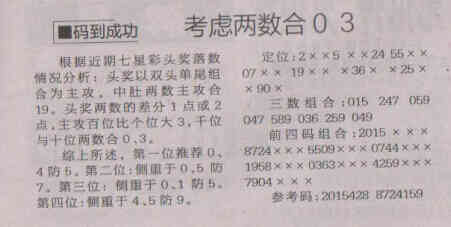 【码到成功】第1553期预测信息<特区报
