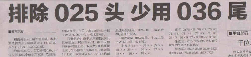 【概率玩彩】第1553期预测信息<特区报