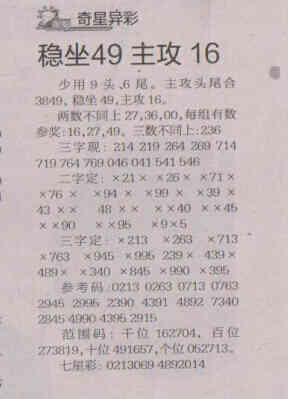 【奇星异彩】第1553期预测信息<特区报