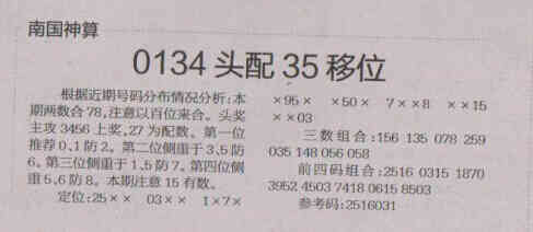 【南国神算】第1554期预测信息<特区报