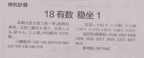 【神机妙算】第1554期预测信息<特区报