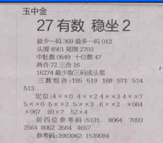 【玉中金】第1554期预测信息<特区报