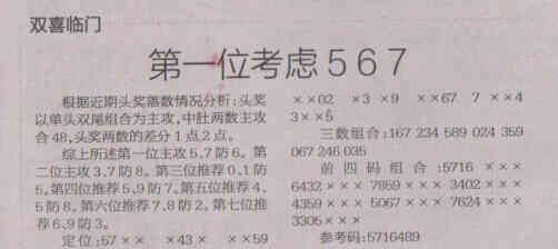 【双喜临门】第1557期预测信息<特区报