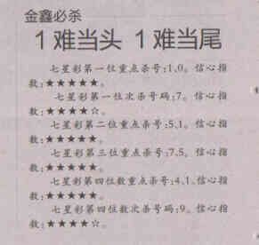【金鑫必杀】第1557期预测信息<特区报
