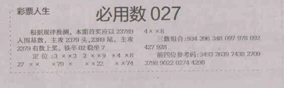 【彩票人生】第1558期预测信息<特区报