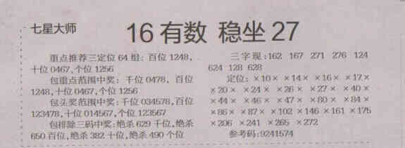 【七星大师】第1558期预测信息<特区报
