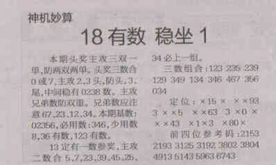 【神机妙算】第1558期预测信息<特区报