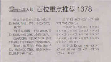 【七星大师】第1559期预测信息<特区报
