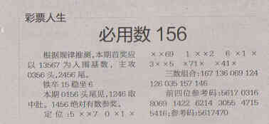 【彩票人生】第1560期预测信息<特区报