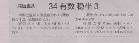 【鸿运当头】第1561期预测信息<特区报