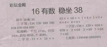 【彩坛金殿】第1566期预测信息<特区报>