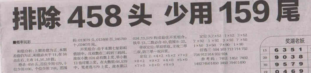 【概率玩彩】第1566期预测信息<特区报>