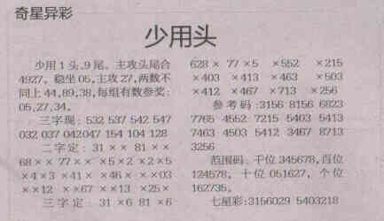 【奇星异彩】第1566期预测信息<特区报>